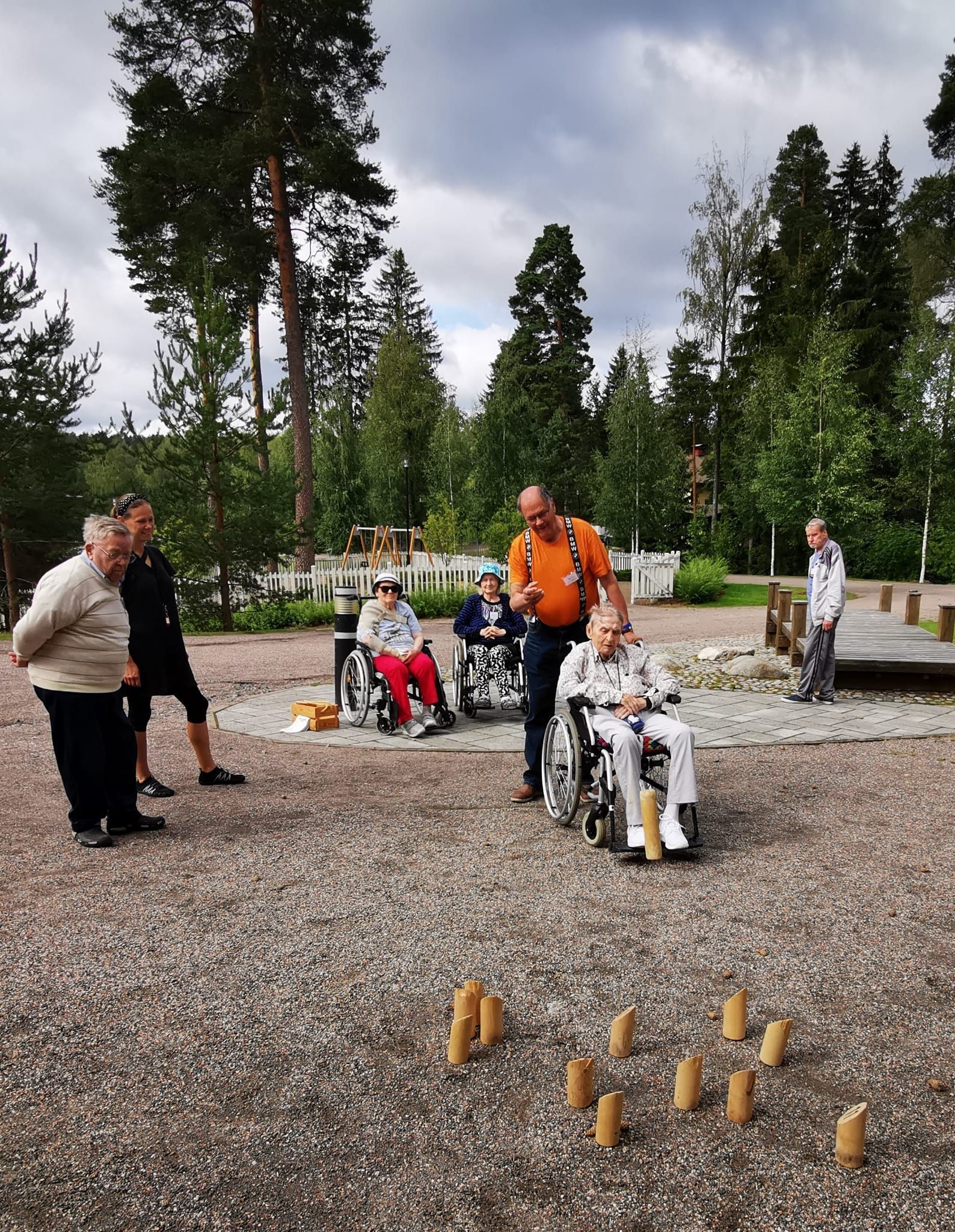 Aurinko paistaa lämpimästi ja keltainen Luomaniemen toimintakeskus kylpee elokuisen auringon valossa. Olemme vastaanottamassa lomalle saapuvia omaishoitopareja. On ihana nähdä aina uudelleen ja uudelleen lomalle palaavia jo ystäviksi muodostuneita lomalaisia, mutta myös uusia ensimmäistä kertaa saapuvia omaishoitopareja. Majoittautumisen jälkeen nautimme lounasta ja tutustumme toisiimme. Omaishoitajat pääsevät yhdessä hengähtämään ja omaishoidettavien ryhmä kokoontuu yhteiseen tuokioon. Illalla kokoonnutaan koko porukka luonnon helmaan hauskaan mölkkyturnaukseen.
